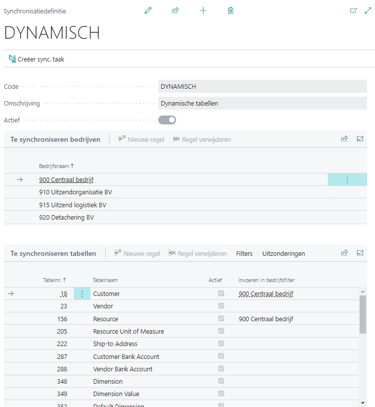 - Welke tabellen tussen die bedrijven gesynchroniseerd moeten worden.