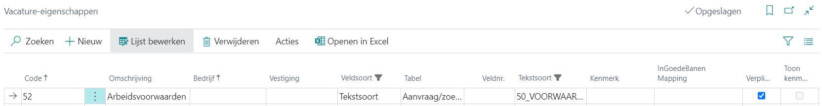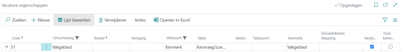 Mag de vacature alleen gepubliceerd worden als het ingestelde gegeven is ingevuld, stel dit dan als verplicht veld in door de optie Verplicht aan te vinken.