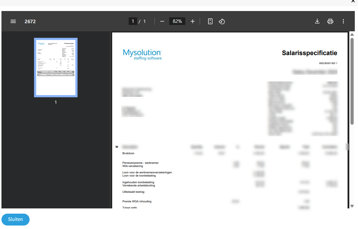 In overige registratiesets voor documenten kunt u instellen dat de documenten in een previewer getoond worden (in plaats van dat ze direct gedownload worden). Gebruikers kunnen daarmee op de portal de inhoud van een document bekijken. Dit kan handig zijn voor documenten zoals loonstroken en jaaropgaven, waarbij het niet altijd gewenst is dat deze bestanden op de computer achterblijven. Gebruikers kunnen in de previewer kiezen om het document alsnog te downloaden of af te drukken.