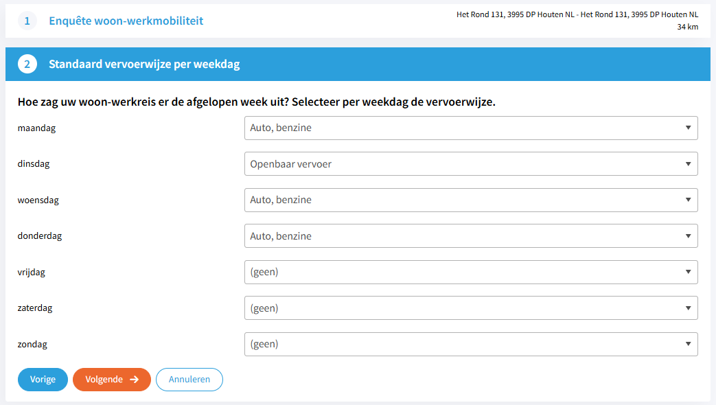Stap 2 Vervoerwijze per weekdag selecteren