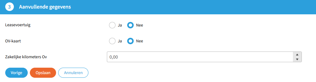 Wordt geen gebruikgemaakt van Google Maps, dan kan de resource het woon- en werkadres en de retourafstand handmatig invullen.