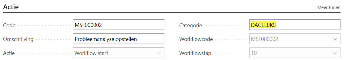 Voorbeeld: Vul in alle MA's die u dagelijks wilt uitvoeren de categorie DAGELIJKS in.