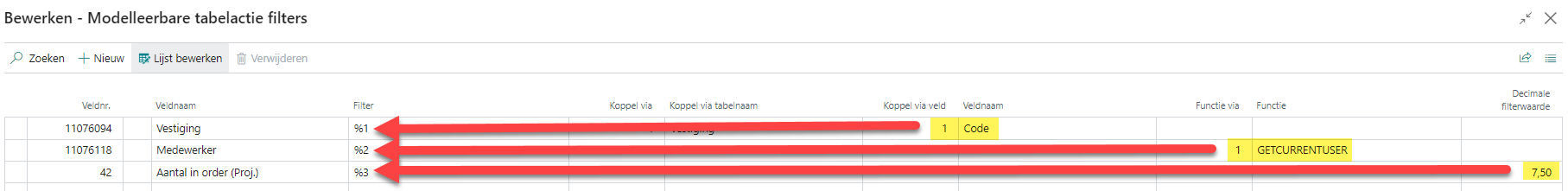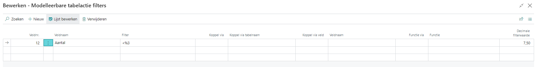 Dit probleem kunt u voorkomen door in het veld Filter de waarde %3 in te vullen en in het veld Decimale filterwaarde de gewenste decimale waarde in te stellen. Door gebruik van %3 in het filter wordt de decimale waarde juist toegepast in het filter, nadat de regio van de gebruiker die de MA heeft getriggerd is toegepast op het decimale veld.