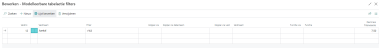 U opent de pagina Modelleerbare tabelactie filters vanuit de sneltab Tabelactie van de MA. Selecteer de regel met de tabel waarop u een of meer filters wilt instellen en klik op de actiebalk van de sneltab op de knop Filters.