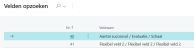 Sommige tabellen zijn gelinkt aan meer dan 1 entiteit. Dit geldt bijvoorbeeld voor tabel 5050 (contacten en contactpersonen) en tabel 11076101 (zoekacties, aanvragen en opportunities). In die gevallen toont de keuzelijst in het veld Veldnaam de veldnamen van alle velden die van toepassing zijn, met een / ertussen.