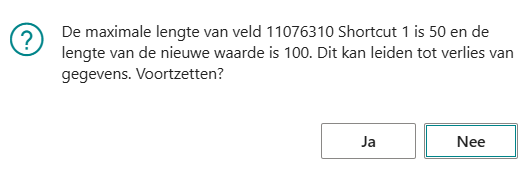 Bij het invoeren wordt gecontroleerd of het datatype en de veldlengte van beide velden (die in Veldnr. en Waarde uit veldnr.) met elkaar overeenkomen. Dit kan een foutmelding of waarschuwing opleveren.