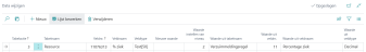 In een regel op de pagina Data wijzigen stelt u via de velden Tabelactie en Veldnr. in welk flexibel veld gewijzigd moet worden.