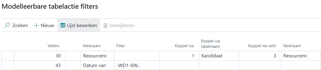 Structuur van een modelleerbare actie instellen (tabellen, filters en triggers)
