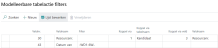 - Selecteer in de sneltab Tabelactie de tweede regel, die met tabelnr. 11076111 en klik in die sneltab op de knop Filters.